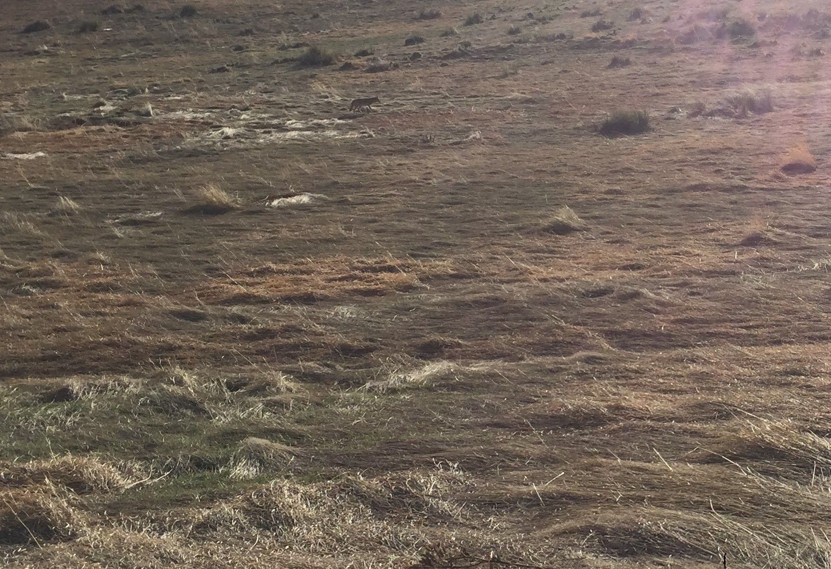 He was beefy and fluffy, and was running towards with his mouth open, tongue hanging out, and ears aimed at me. I put my hand on my bowie knife and prepared to use it if I had to. When the coyote was about thirty yards or so away from me, he stopped dead in his tracks, stared at me for a few seconds, and then trotted back the way he came before veering off the trail to hide in the brush to the west.