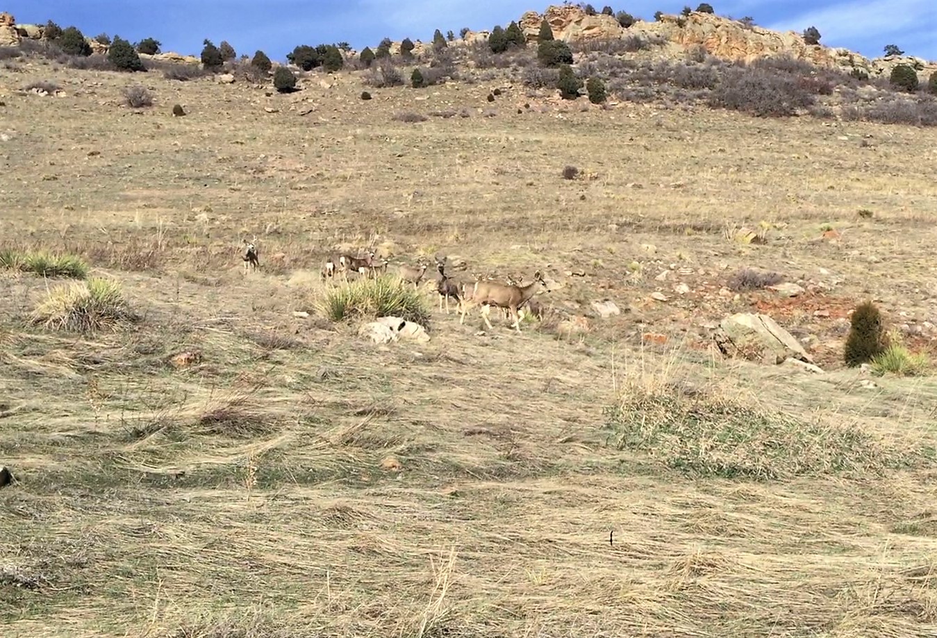That’s when most of the deer stopped to stare at me, just to ensure I wasn’t a predator. To be honest, I am a predator to deer. But, I’m also a hunter, not a poacher. I’m not gonna shoot a muley out of hunting season in a residential hiking area, even though muley backstraps are to die for, and Ken Caryl Valley could use a few less deer. When most of the deer figured out I wasn’t a threat, they moved quite a bit closer to me. They still were about fifteen to twenty yards away, but, for wildlife as skittish as deer typically are, that’s really, really close. Like I said, the deer in Ken Caryl Valley are basically pets. They won’t get spooked unless you deliberately spook them.