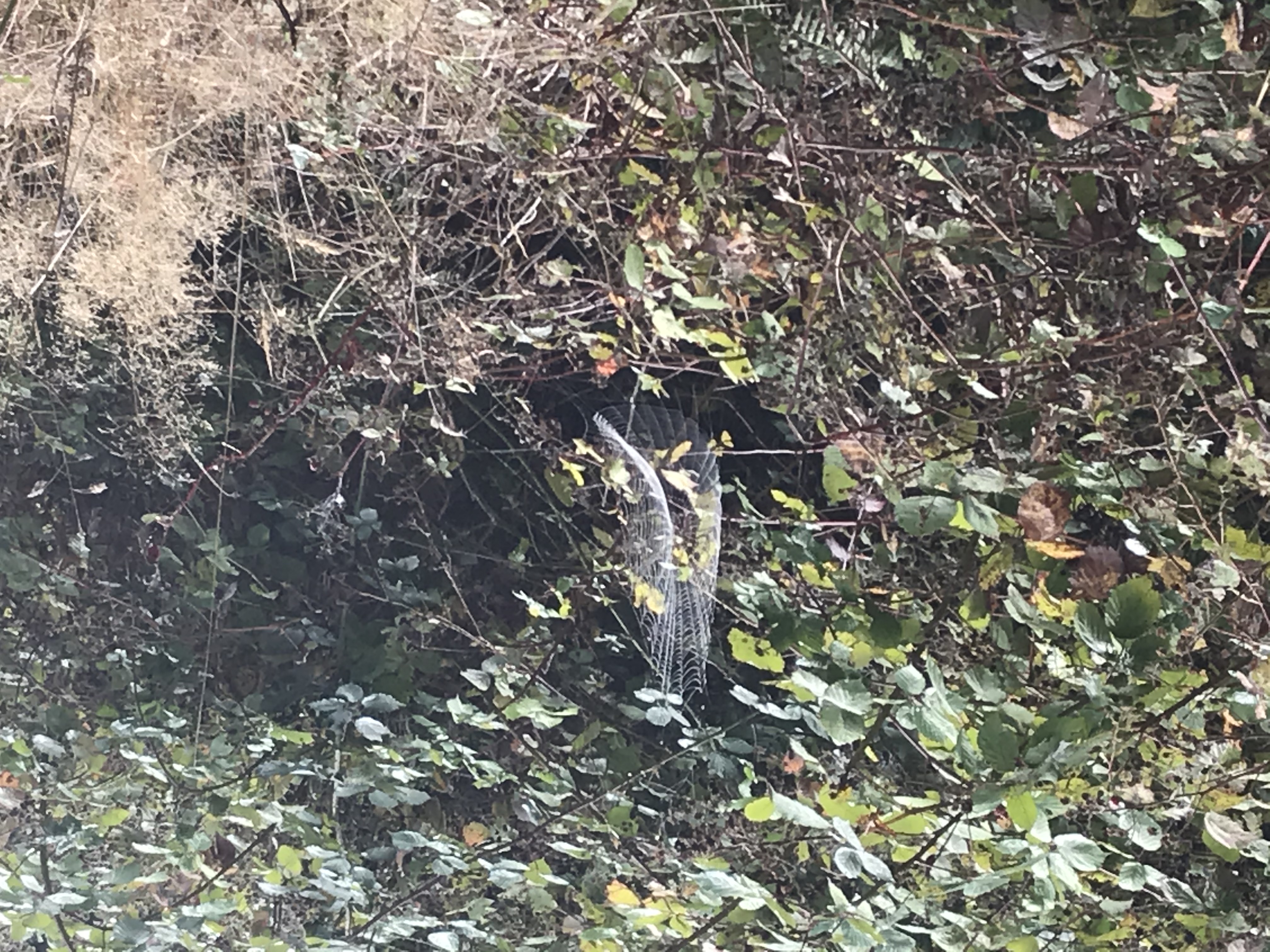 There was a narrow gravel trail shaded by trees that led down to the beach itself. The birds were still chirping as I wandered down that gravel trail, so I felt safe enough to go see the beach itself. There were also lots of blackberries growing alongside the trail. However, each patch of ripe blackberries that were within arms reach of me was guarded by a spider of some sort, most of which were those harmless Cross spiders. In fact, the bushes, trees, and even the ground everywhere I looked were blanketed in wispy spider webs, most of which had spiders living in them. It was very creepy, but nothing that really spooked me. If anything, I found it fascinating. Still, like the respectful (totally not cowardly) person I am, I didn’t disturb any of the webs, which sadly meant I couldn’t try any of the ripe wild blackberries those woods had to offer.
