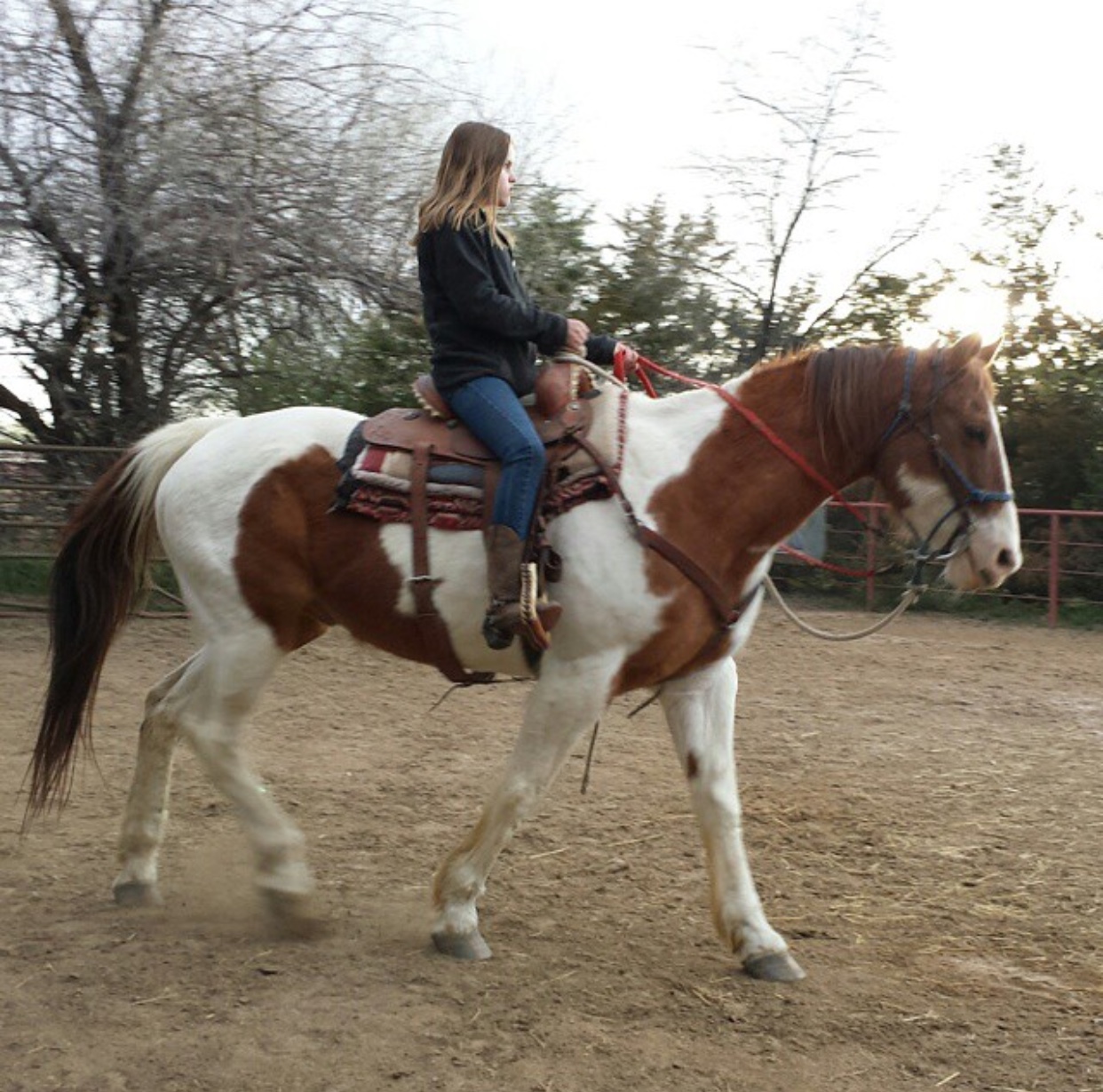 So, here's a picture of middle-school me riding my great uncle Courtney's horse, Apache (the same horse that bucked me off when I was seven years old). As you can tell, it was a peaceful ride that time.