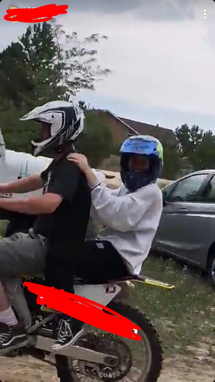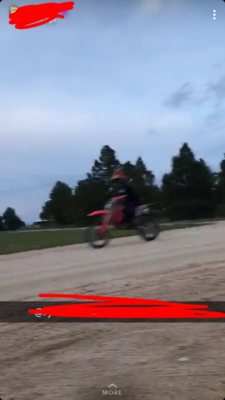 I was stuck mixing more gas for my dirtbike, but once I filled up my tank, I also disappeared into the sunset. I rode a mile south, then another half-mile east, and then retraced my tracks. There were no signs of them until I rode back into our neighborhood, and saw them riding over the crest of the hill. I pinned it and passed them like they were standing still on the road. I kept my body low towards the dirtbike as I raced down the other side of the hill, and skidded on my right heel around the bend. Ryder was riding pretty slow with his girlfriend on the back, and I waited so I could ride next to them back home.