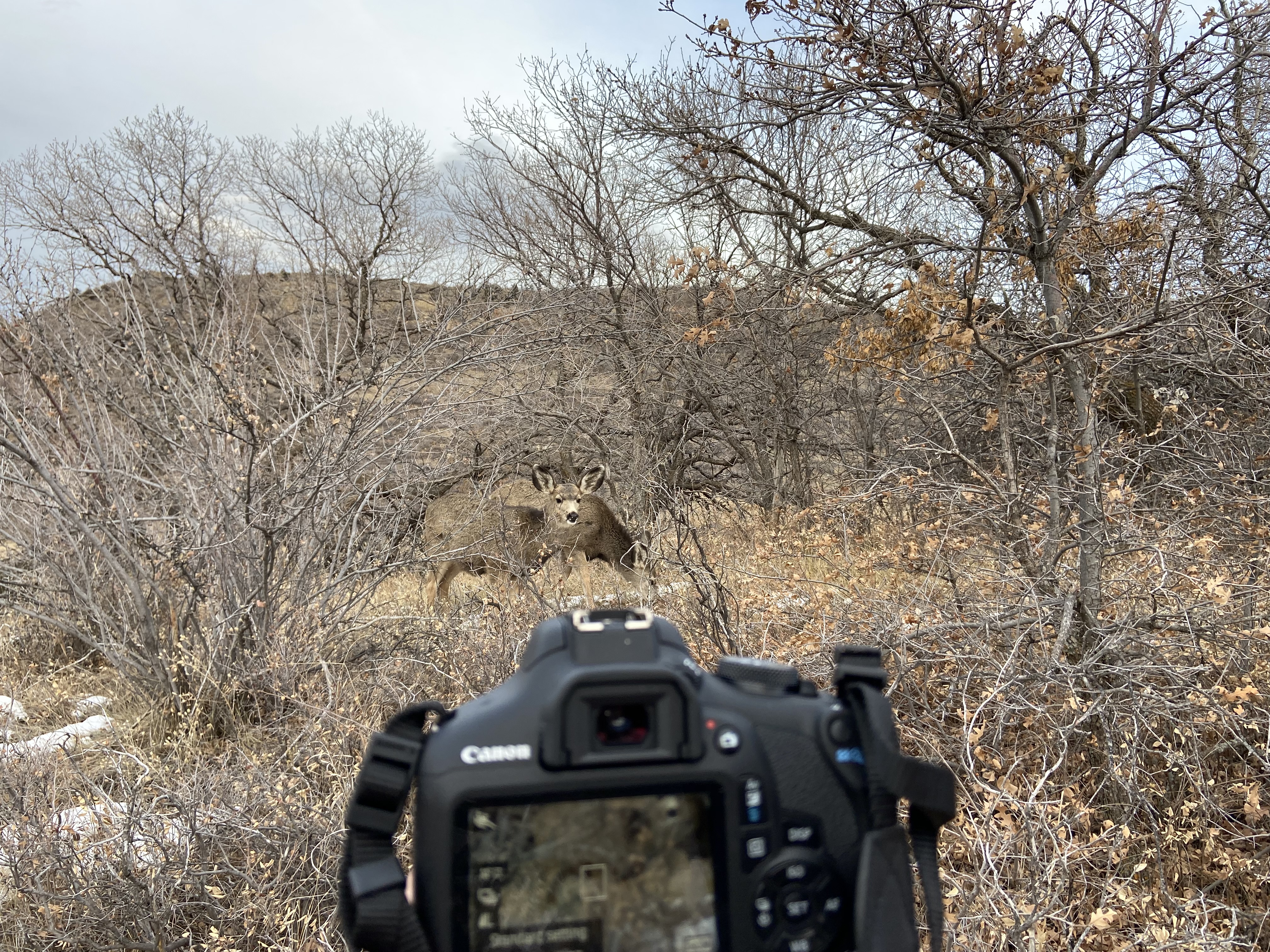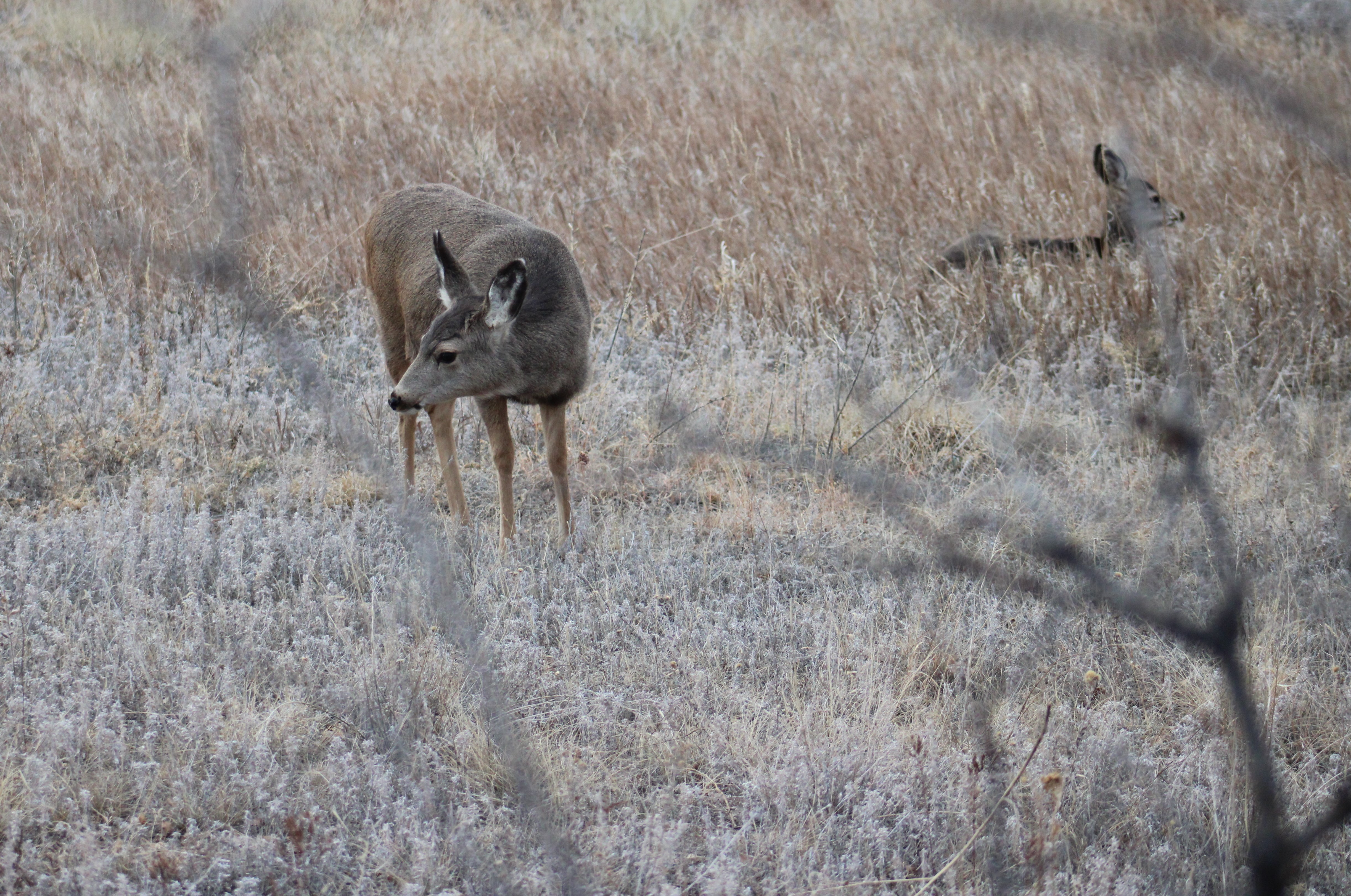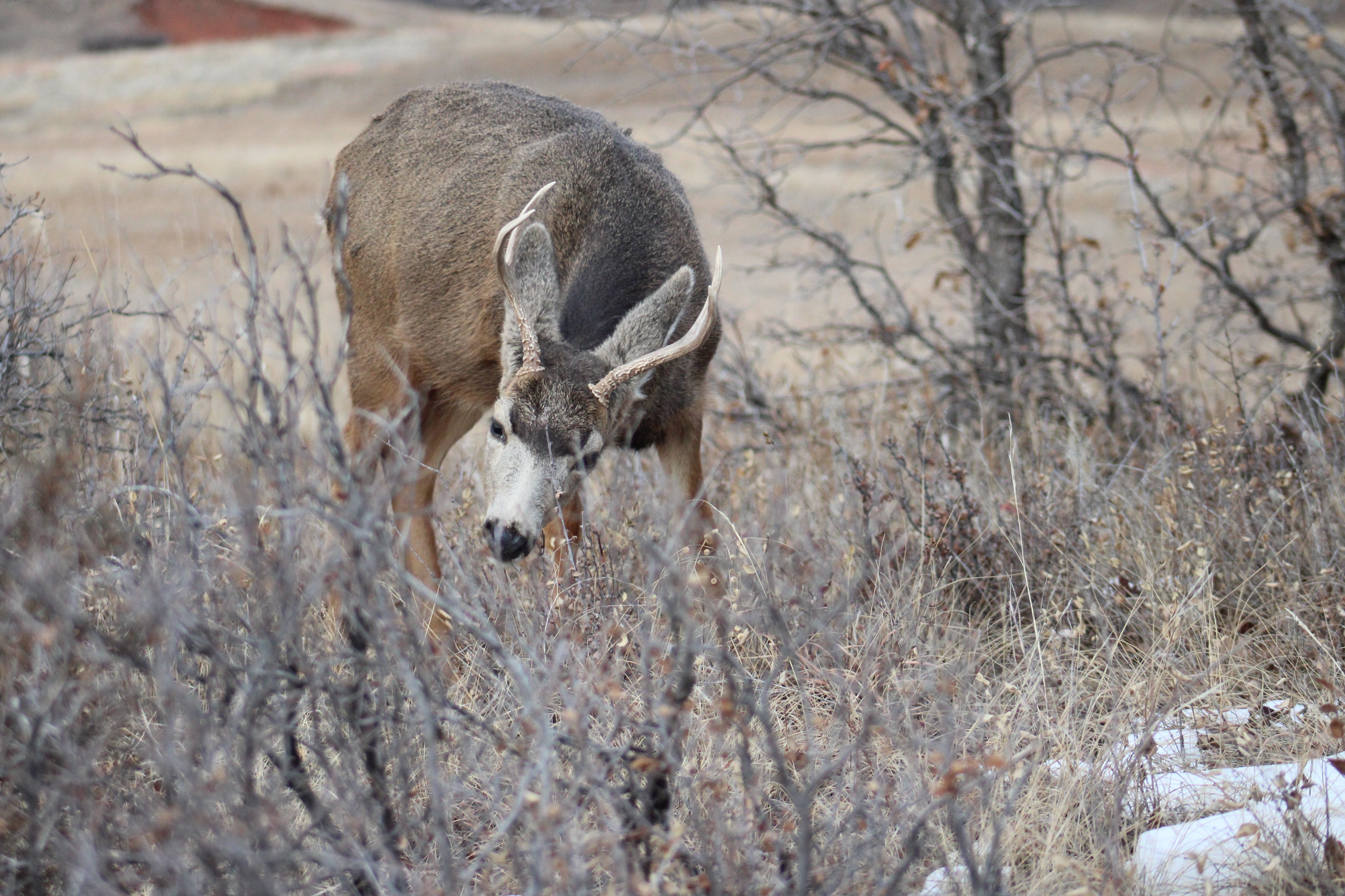 However, I find hope and peace in the fact that the valley Muleys are tough little creatures. And there are people, while fairly few and far between in Ken Caryl, who are actively trying to help Mule Deer (and all other native species of wildlife) survive and thrive. Last summer, a large volunteer group made up of residents and valley rangers went out and culled invasive species, then planted native foliage for the Mule Deer to graze. Thanks to this, I've come across large patches of silver sage, rabbitbrush, prickly pear cacti, and other Mule Deer food that were deliberately planted by the volunteers.