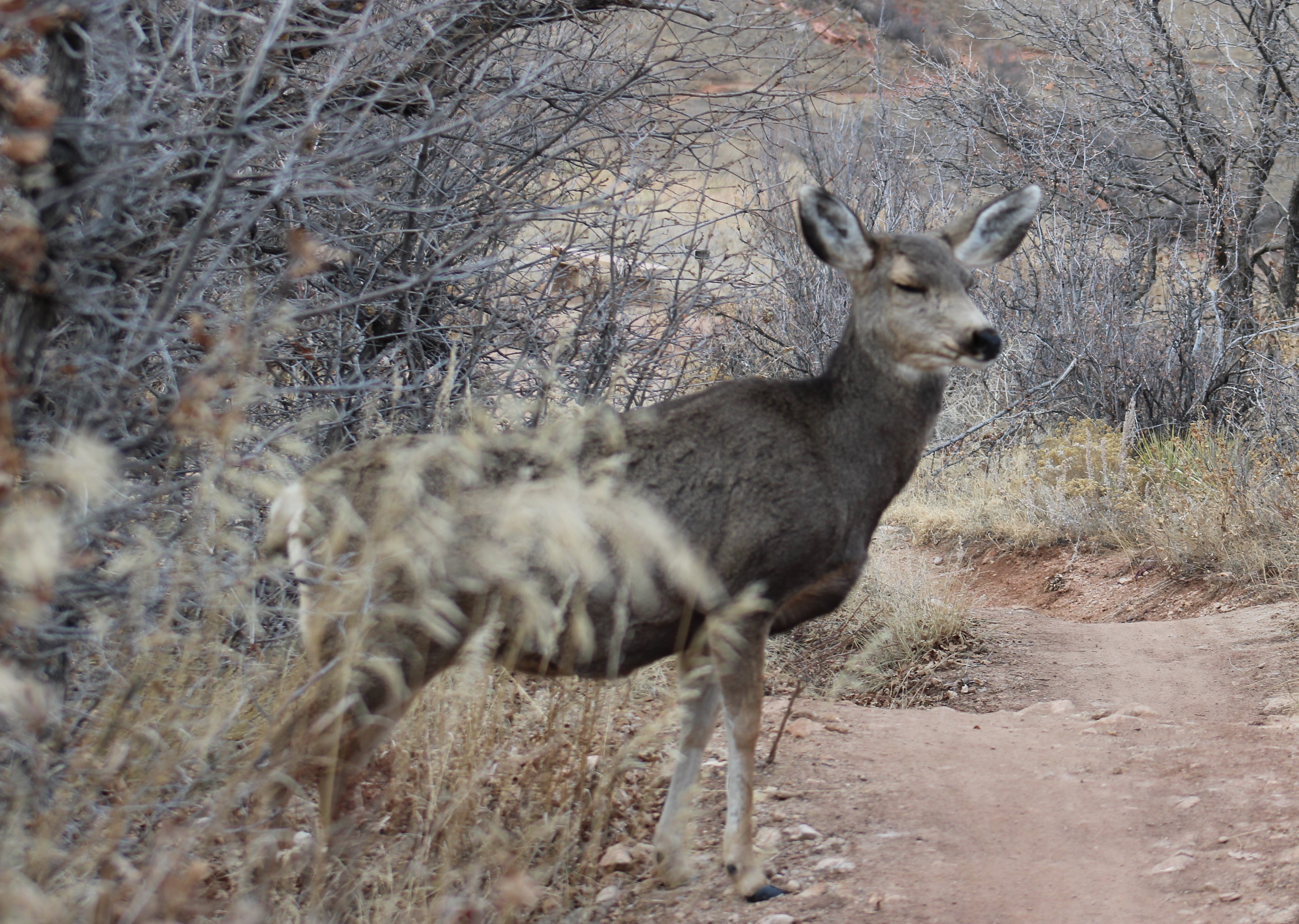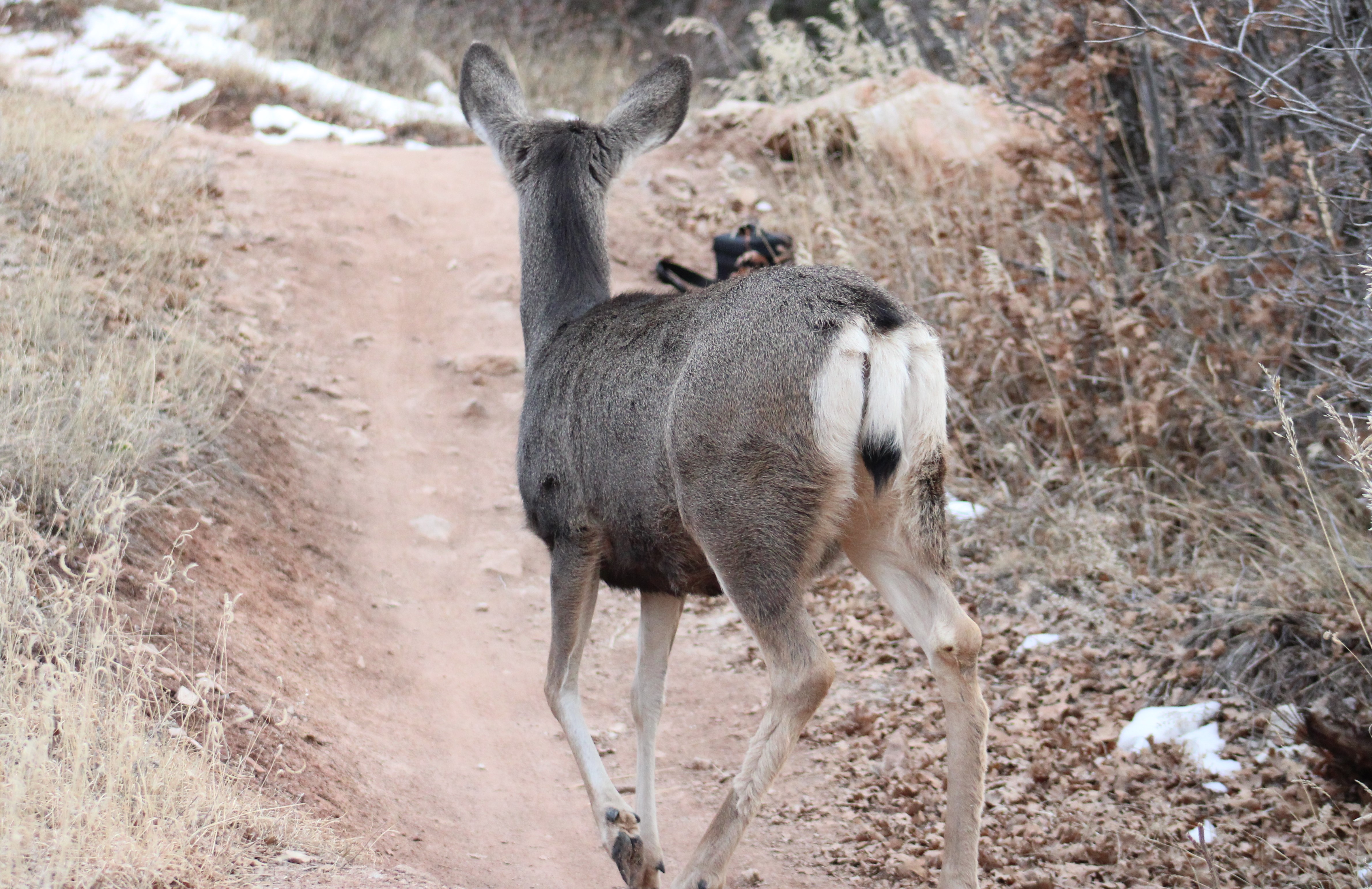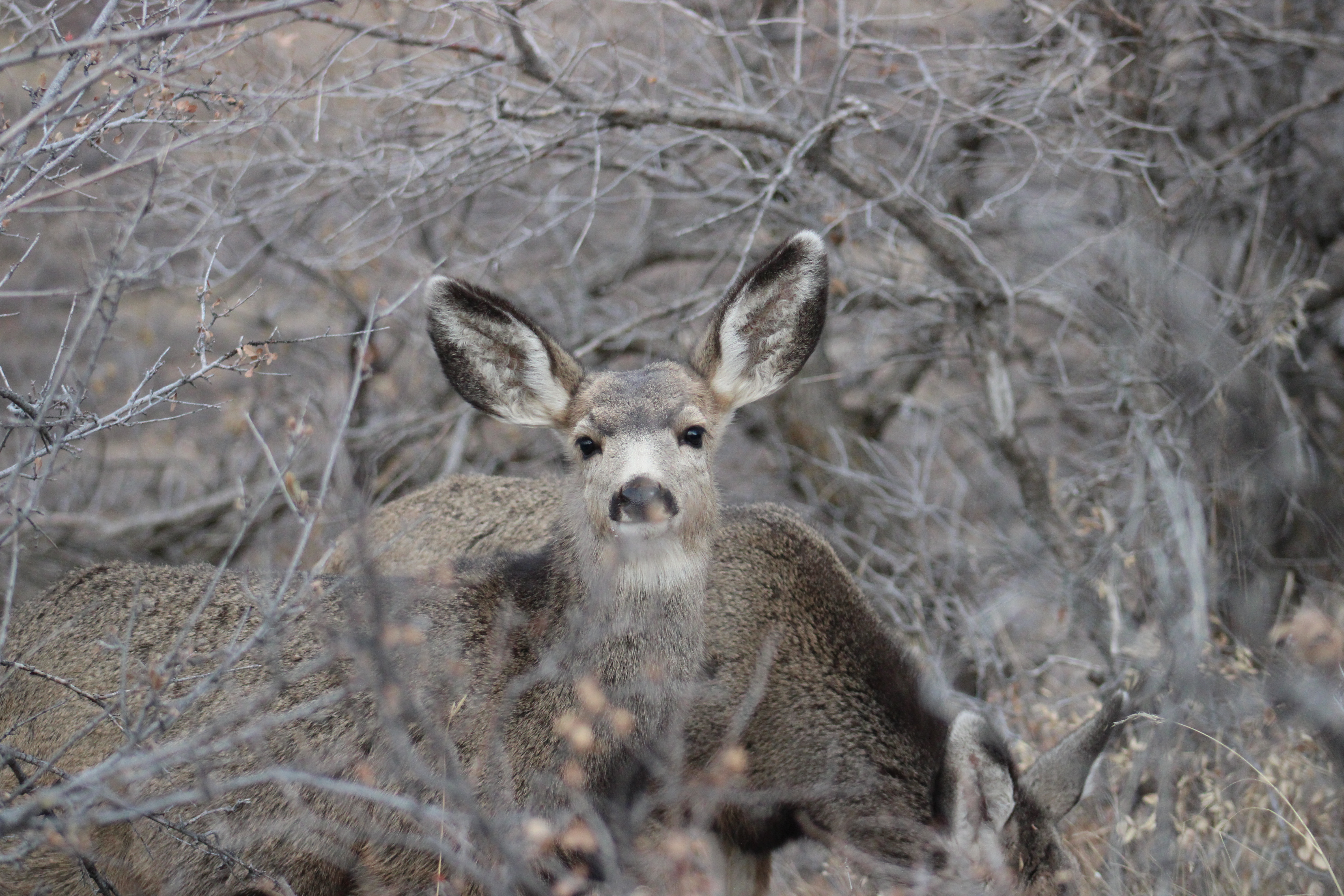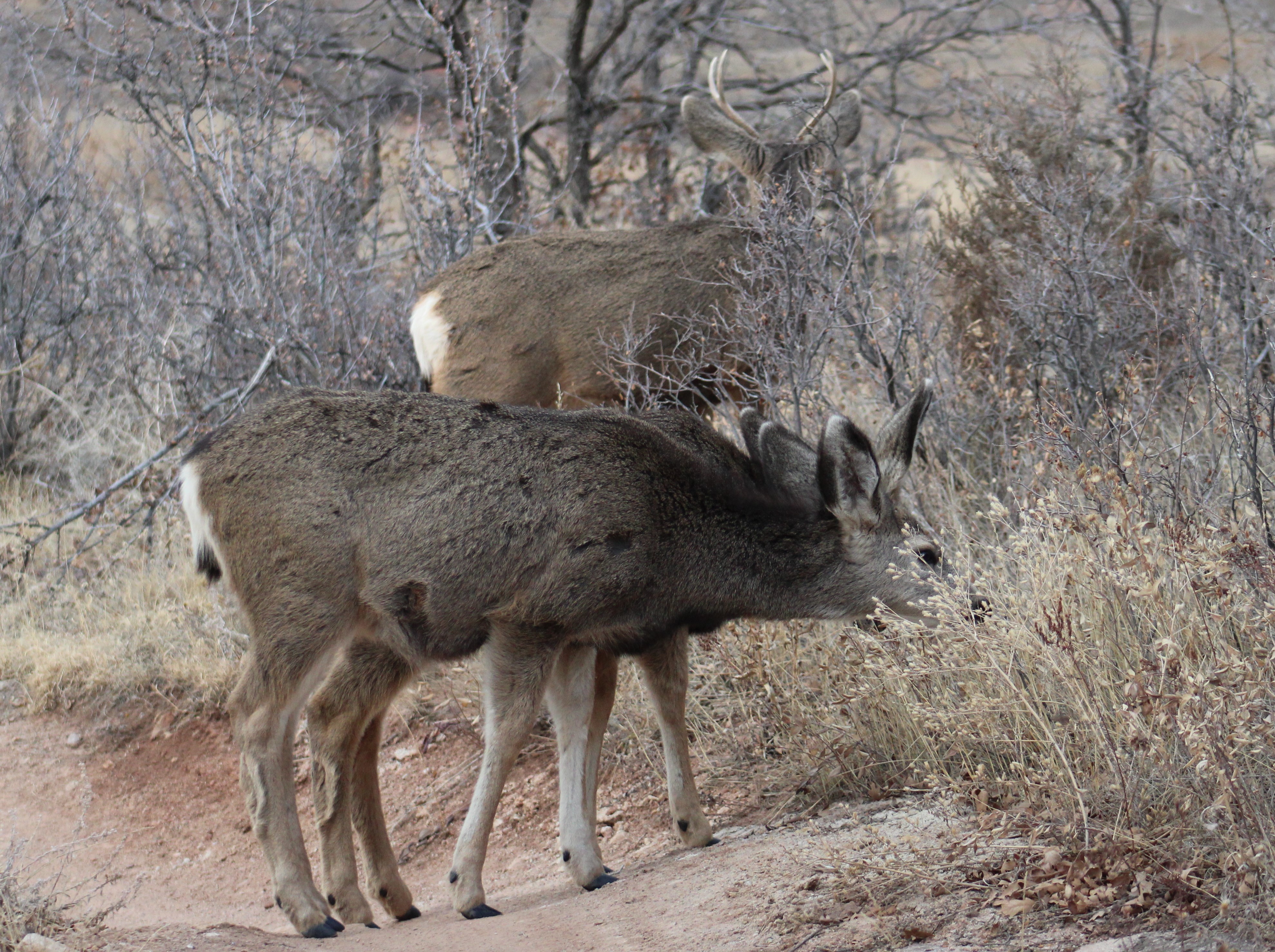 However, I find hope and peace in the fact that the valley Muleys are tough little creatures. And there are people, while fairly few and far between in Ken Caryl, who are actively trying to help Mule Deer (and all other native species of wildlife) survive and thrive. Last summer, a large volunteer group made up of residents and valley rangers went out and culled invasive species, then planted native foliage for the Mule Deer to graze. Thanks to this, I've come across large patches of silver sage, rabbitbrush, prickly pear cacti, and other Mule Deer food that were deliberately planted by the volunteers.