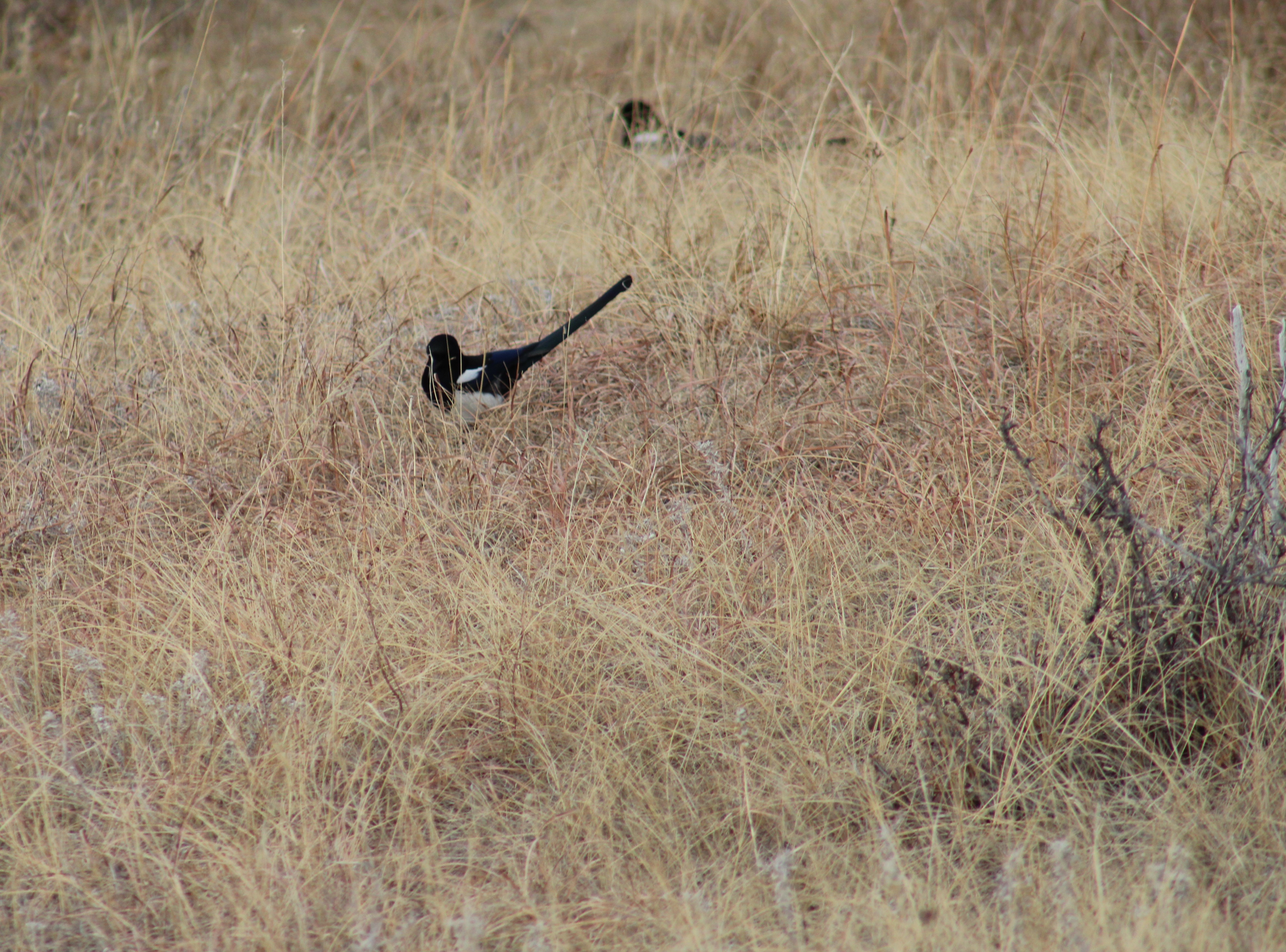 Right as I came up to the crest of the hogback, a tribe of noisy magpies drifted into the Gambel brush. At first, I wondered if there was something dead in those trees that attracted them. But, when I got closer to them, I realized that the magpies were enjoying a buffet of late-season acorns from the Gambel oaks on the grass below them. They’d peck holes into the shells of the acorns, and extract the seed “meat” to eat using their sharp black beaks and hook-like talons. Occasionally, a couple magpies would get too close together, and the feistier bird would chase the other away. I could almost hear that bird say, "Leave me and my damn acorns alone! This is my food!"