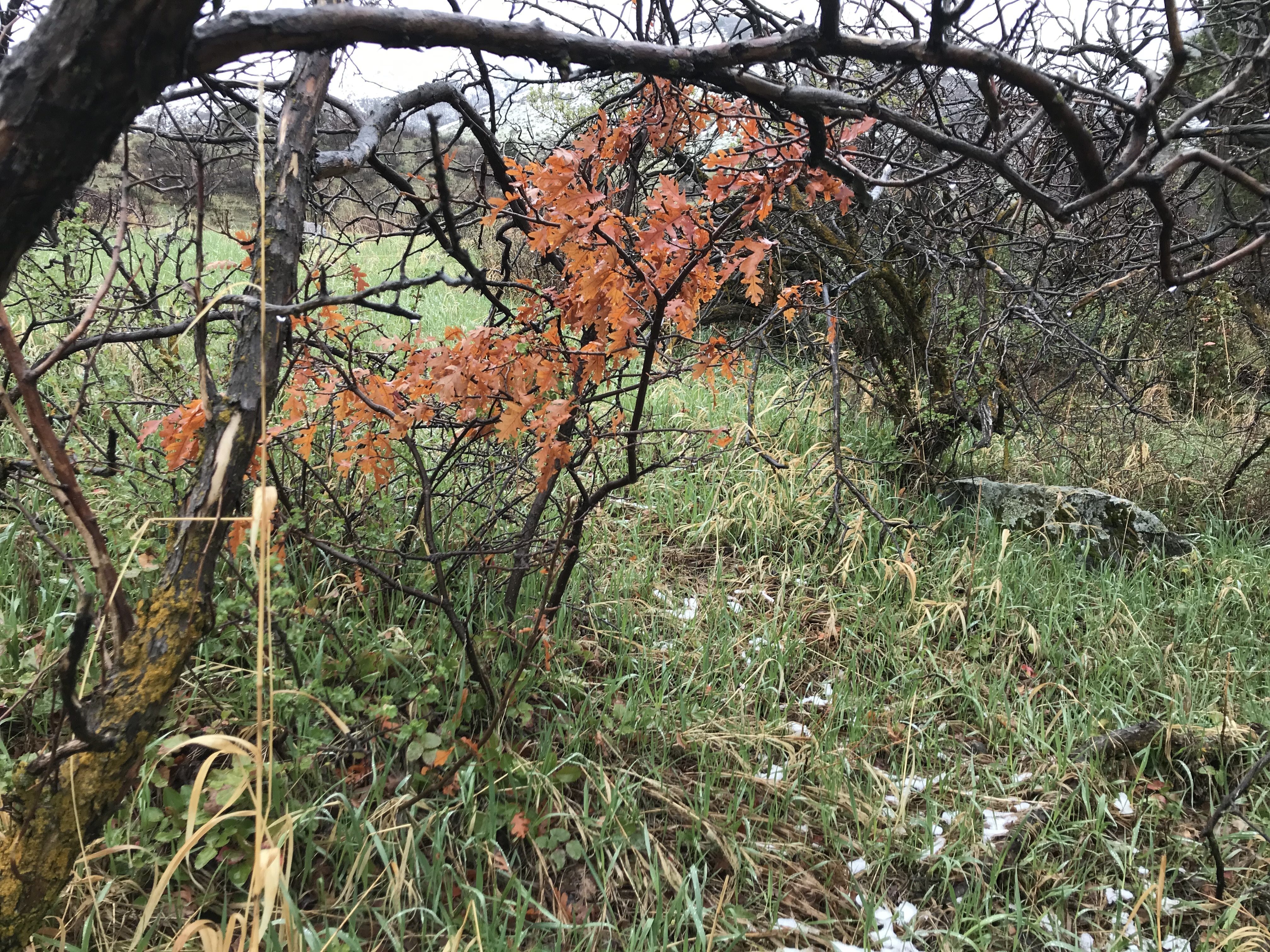 Shriveled, blaze orange leaves still clung to the twisted, lichen peppered branches of the gamble oaks, dripping with moisture from the year’s final snowfall. On the ground below the oaks, new grass was coming to life, painting the floor of the entire valley an emerald green. Nearby flame willows lined the entirety of the creek, providing cover from the sleet. The cottonwoods were still mostly bare, but little leaf buds were beginning to sprout from the highest branches. Soon, those trees would be full and green, much like the various breeds of pine trees that grew alongside them.