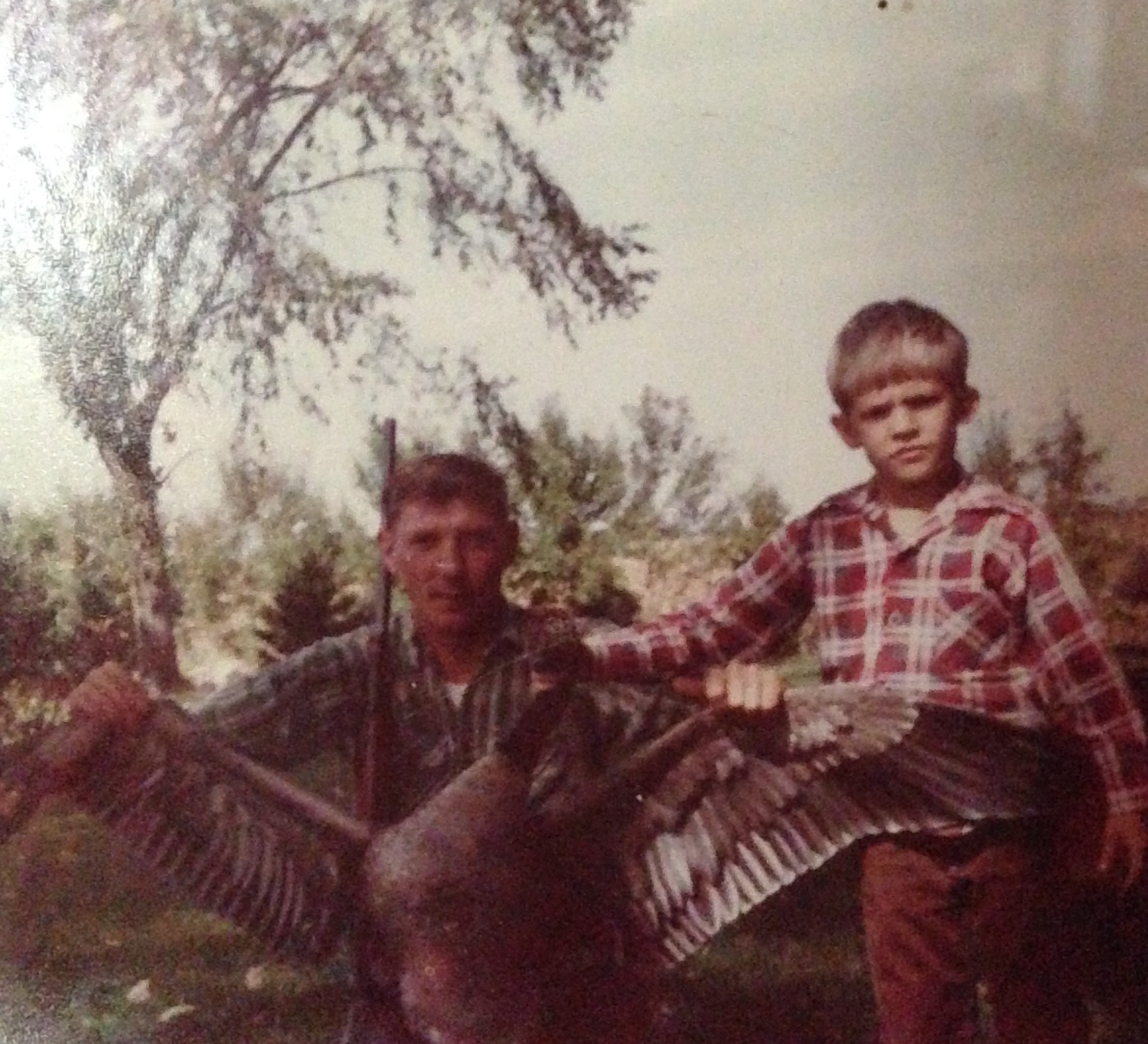My grandpa and one of my uncles posing with a Canada goose my grandpa hunted on the farm, sometime in the late 1970s or early 1980s.