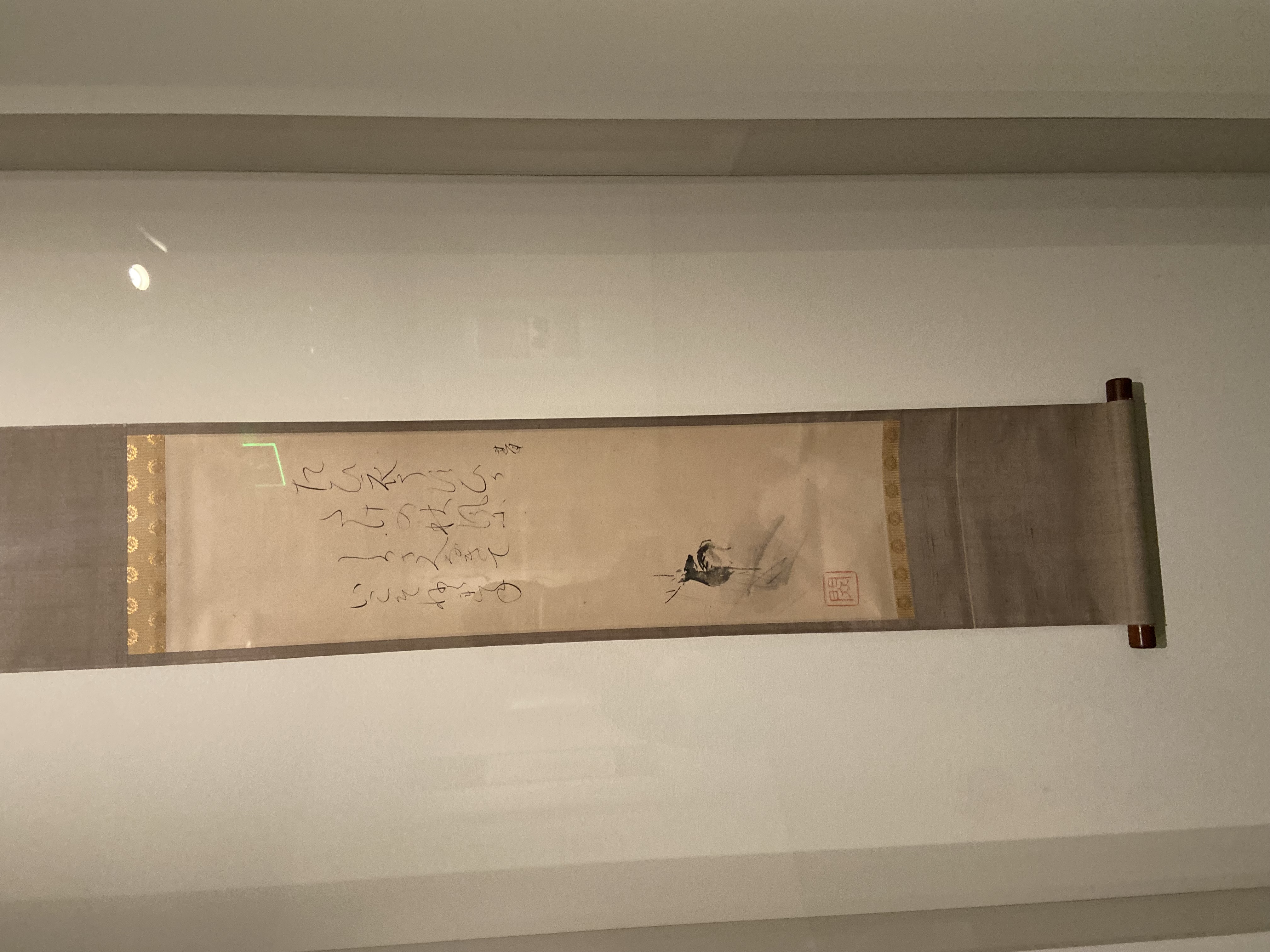 Many of the artwork featured were Japanese poetry slips and journals, known as Waka (which means Poem in Japanese), which haikus originate from (Asia for Educators). In the exhibit, there were many, many Wakas, written and painted using calligraphy ink on various kinds of paper. But, one in particular caught my eye more than the others, that one being “Stag and Poem”, created by Otagaki Renegetsu and Wada Gesshin (Figure 3).