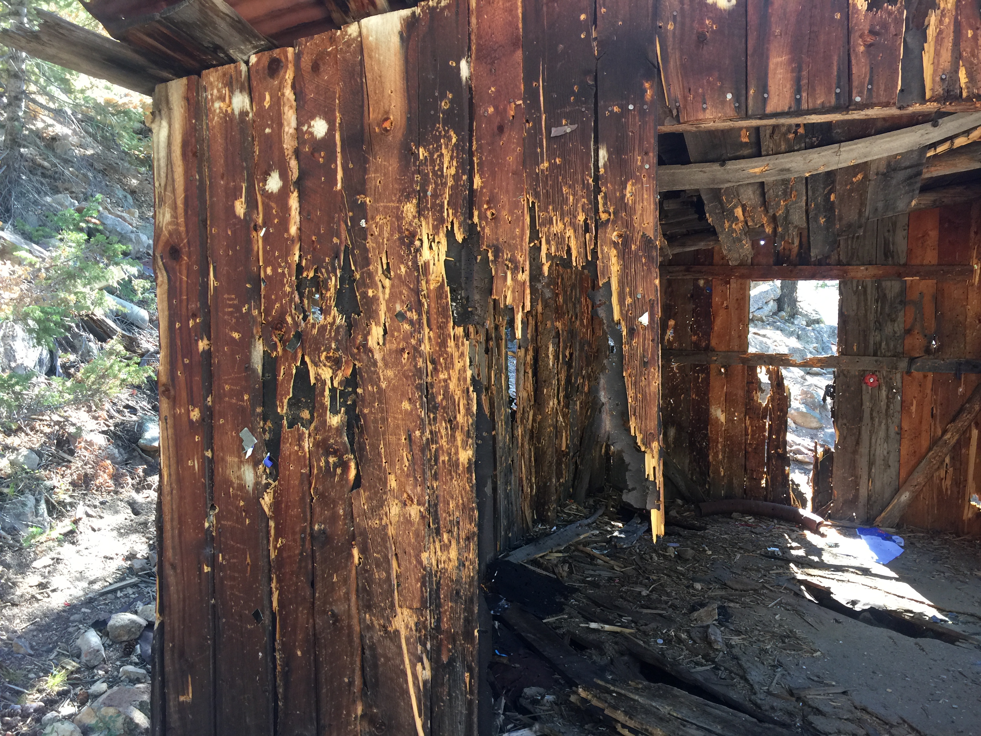 The actual trail was much wider, less steep, and less rocky than the other trail we had taken. It had its boulders and slick spots, but the Xterra made it up without making interesting noises or jolting weirdly. We came to a familiar clearing, where an abandoned mining shack littered with bullet holes stood nearby a rusted gate into an abandoned mine. We got out to stretch our legs and look around. It wasn't too different than two years ago when we first stumbled upon it. The ground was littered with brass shells and empty beer cans that hadn't been there for more than a few days.
