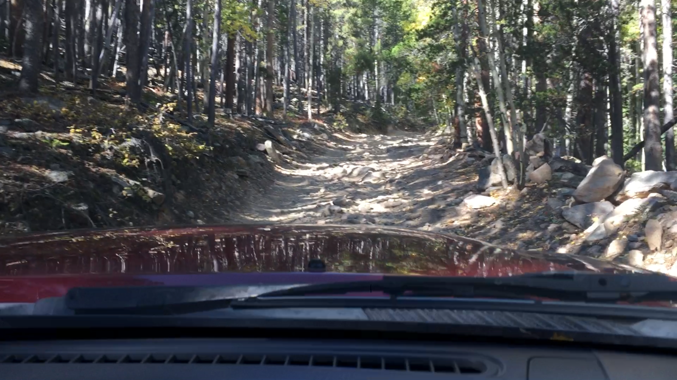 After about a mile of rocks, ditches, and fallen trees, we made it to where the road split off in a few directions. One trail was gated off, and the other seemed to be guarded by a property marker, so we took the road that was just to the left ahead of us and wasn't guarded by signs or gates. This road was severely rough and rocky. It was also very steep, to the point where I began to question if this was a good idea.