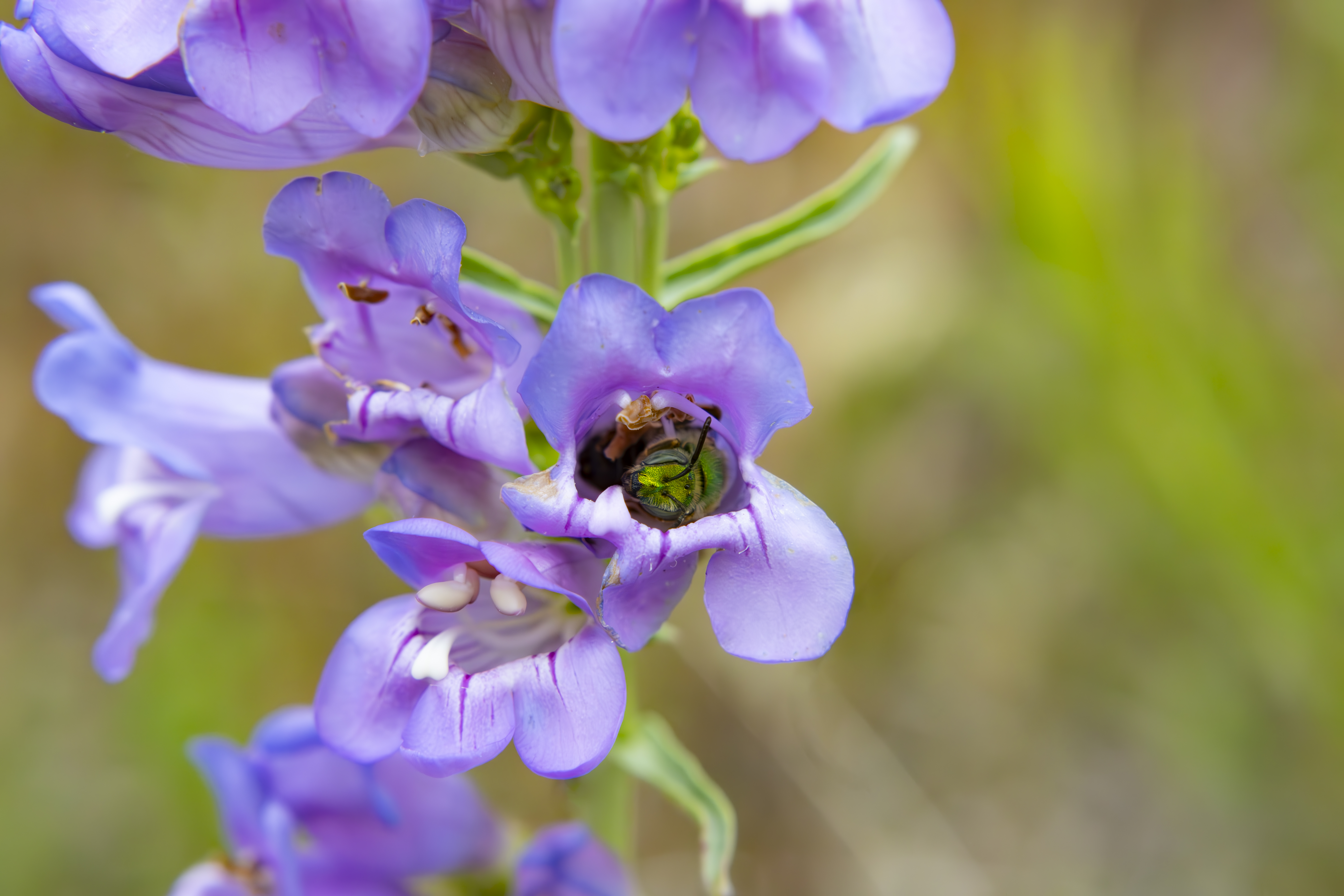 Fine-Lined Sweat bees are not supposed to appear until April, at the earliest. Yet, this female was spotted pollenating a pair of (also early) Dandelions on March, 23, 2026, a few days after Colorado shattered multiple heat records in a row. Female fine-lined sweat bees are only half-green, while males are entirely emerald green. Beyond that, not much is really known about them, because they're just not that interesting (apparently).